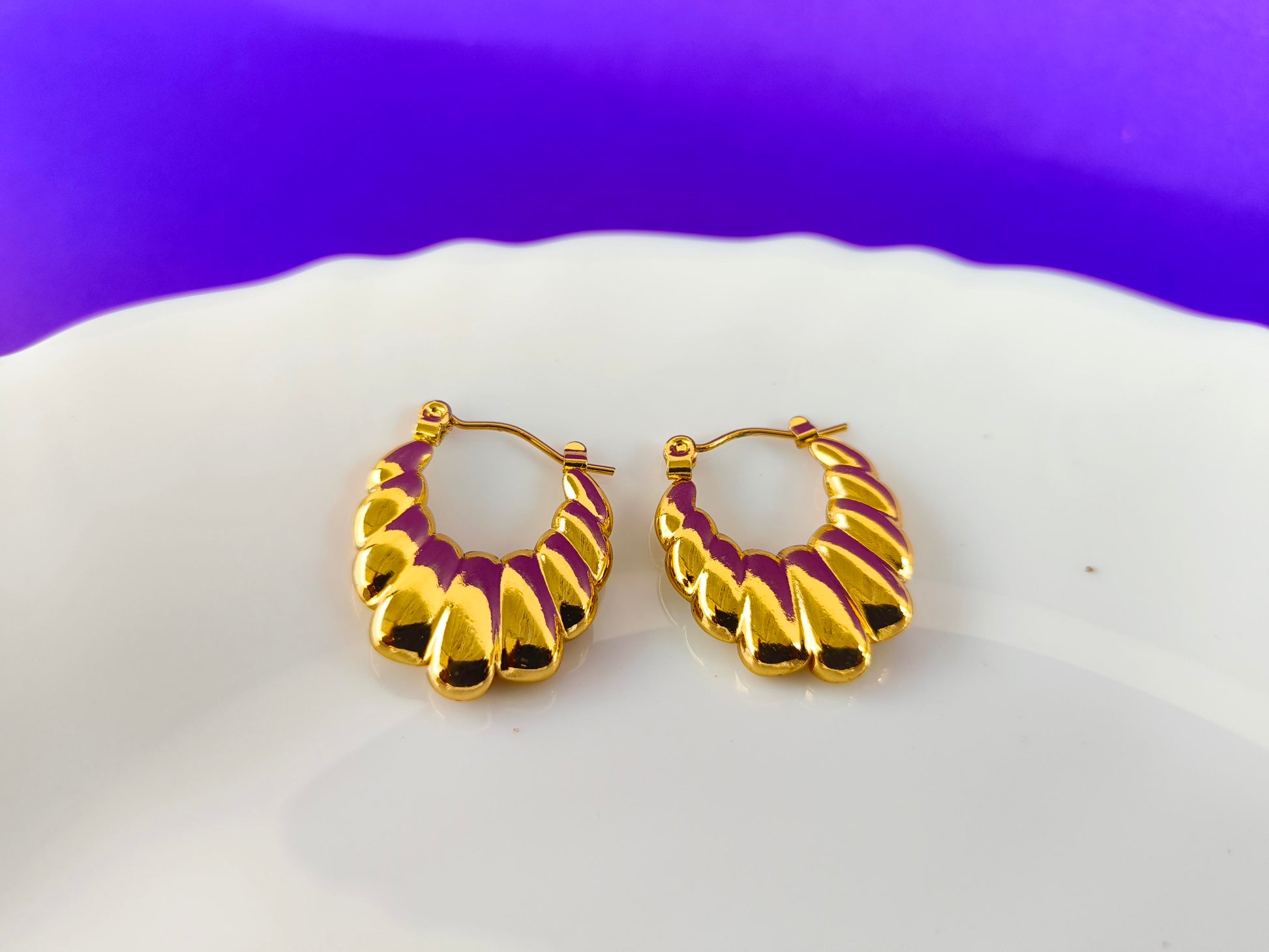 Expertly crafted with durable stainless steel, these GOLD EARRINGS are perfect for daily wear. With an anti-tarnish coating and waterproof design, these earrings will retain their shine and beauty for years to come. Make a timeless statement with these elegant and versatile earrings.Plus, it's recommended to avoid perfumes , chemicals or any kind of cosmetics directly over the product , to maintain its durability.