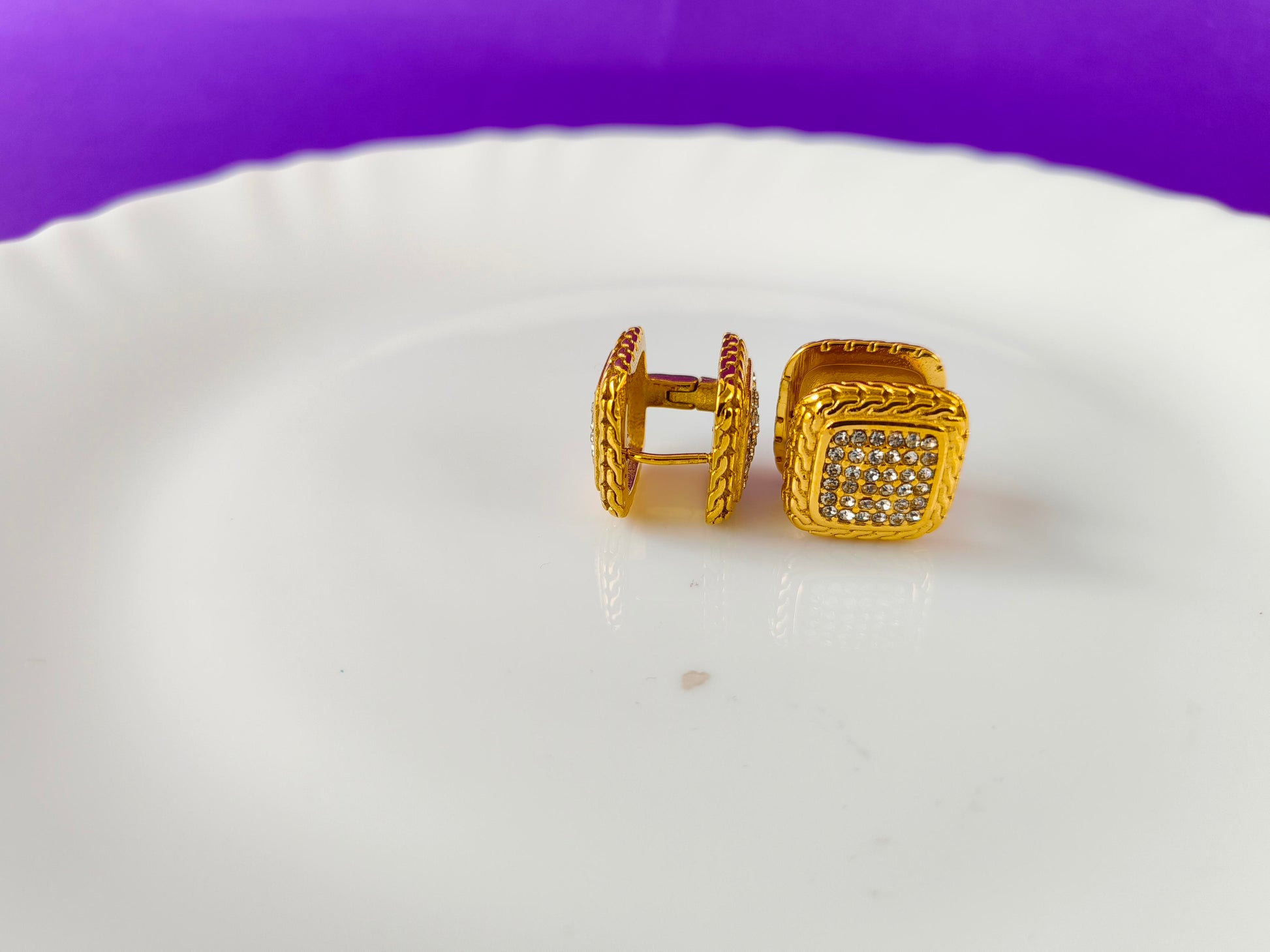 Expertly crafted with durable stainless steel, these GOLD EARRINGS are perfect for daily wear. With an anti-tarnish coating and waterproof design, these earrings will retain their shine and beauty for years to come. Make a timeless statement with these elegant and versatile earrings Plus, it's recommended to avoid perfumes , chemicals or any kind of cosmetics directly over the product , to maintain its durability.